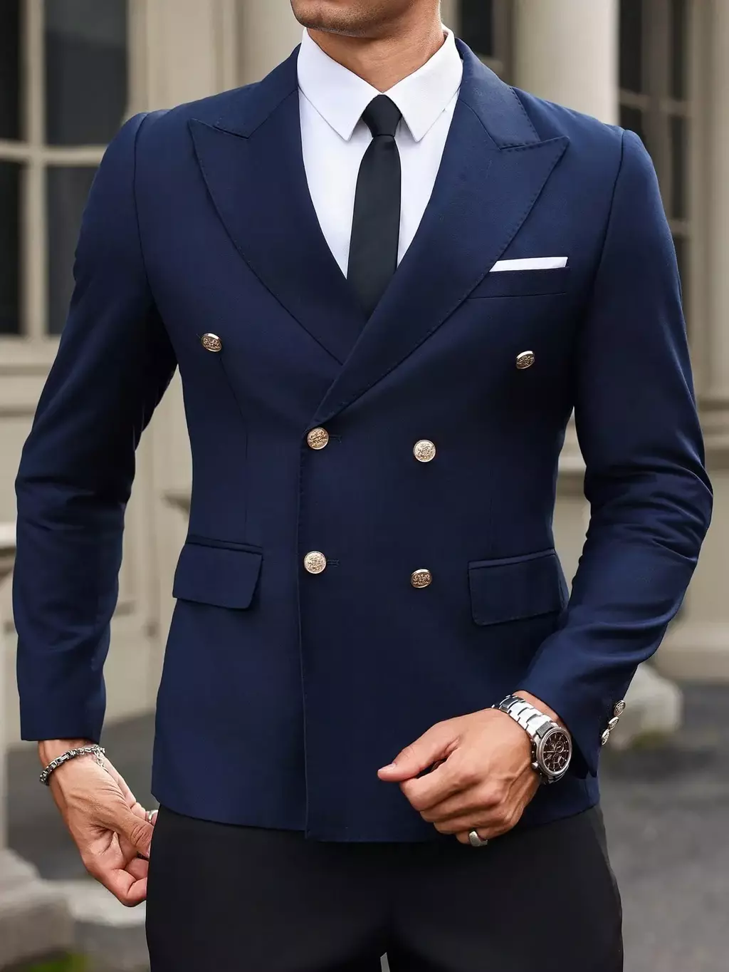 Confeccionado em tecido de alta qualidade, com 80% poliéster e 20% viscose, o blazer possui caimento regular, proporcionando conforto e estrutura impecável. O corte dupla fileira com botões frontais realça a postura e transmite autoridade, enquanto a lapela clássica reforça a estética refinada do estilo Old Money.