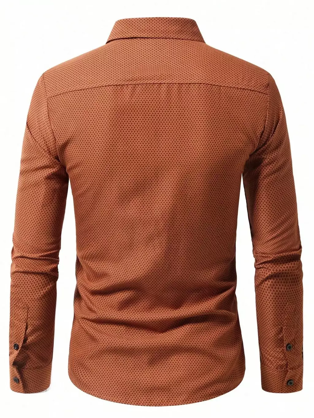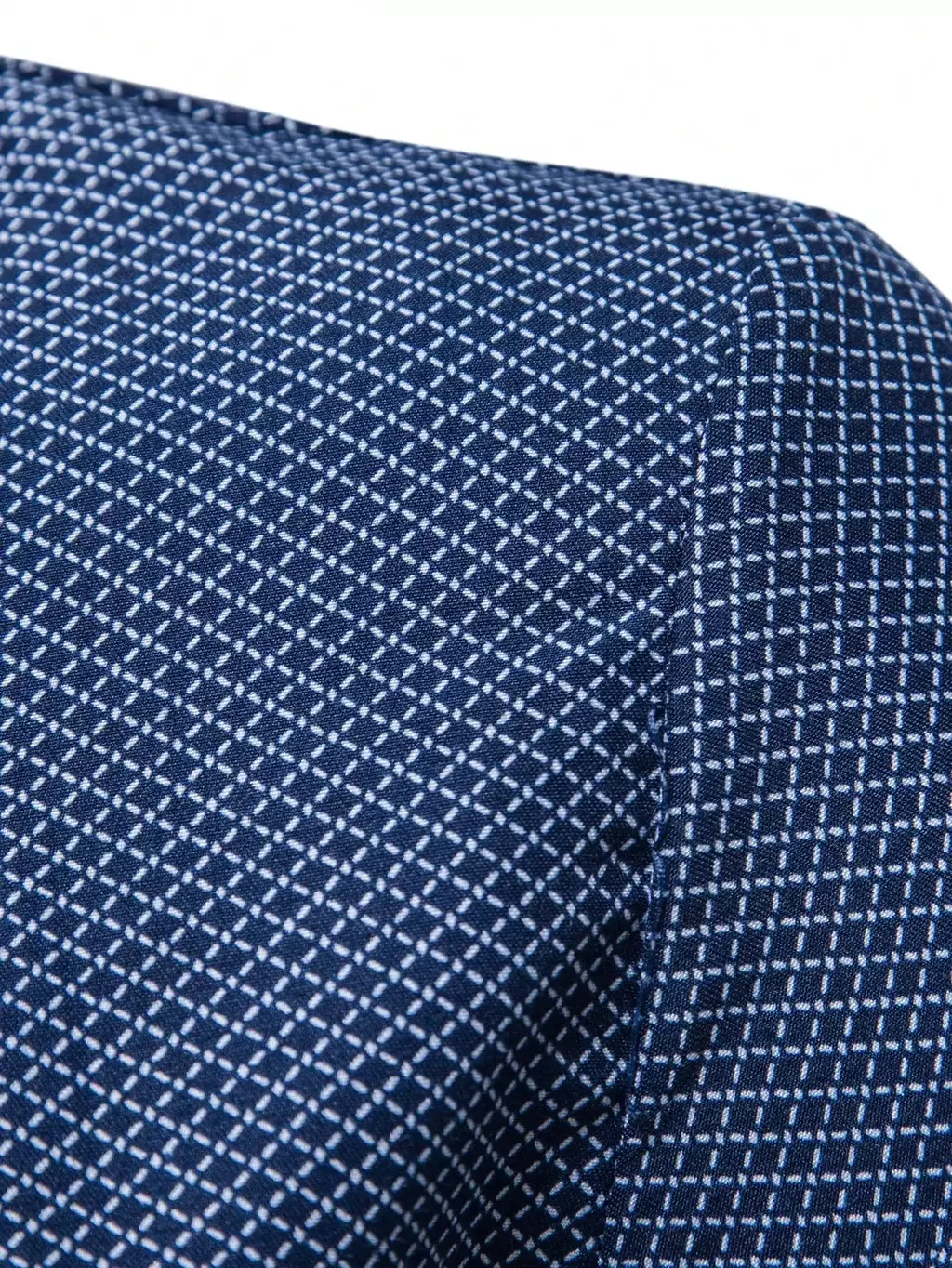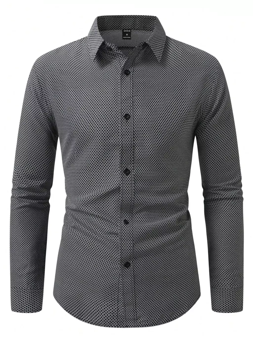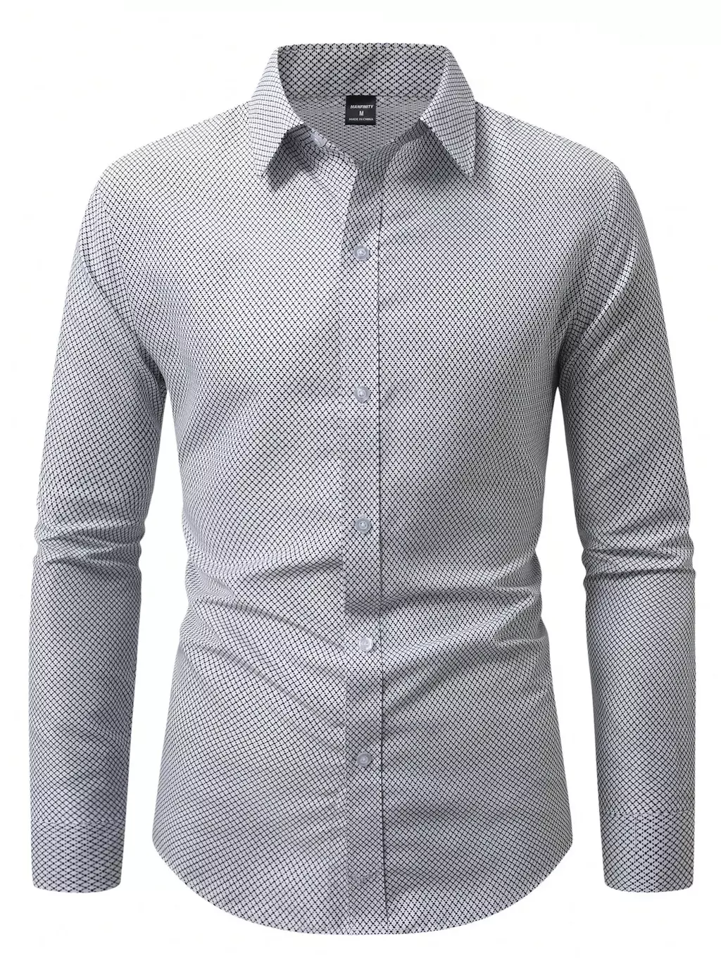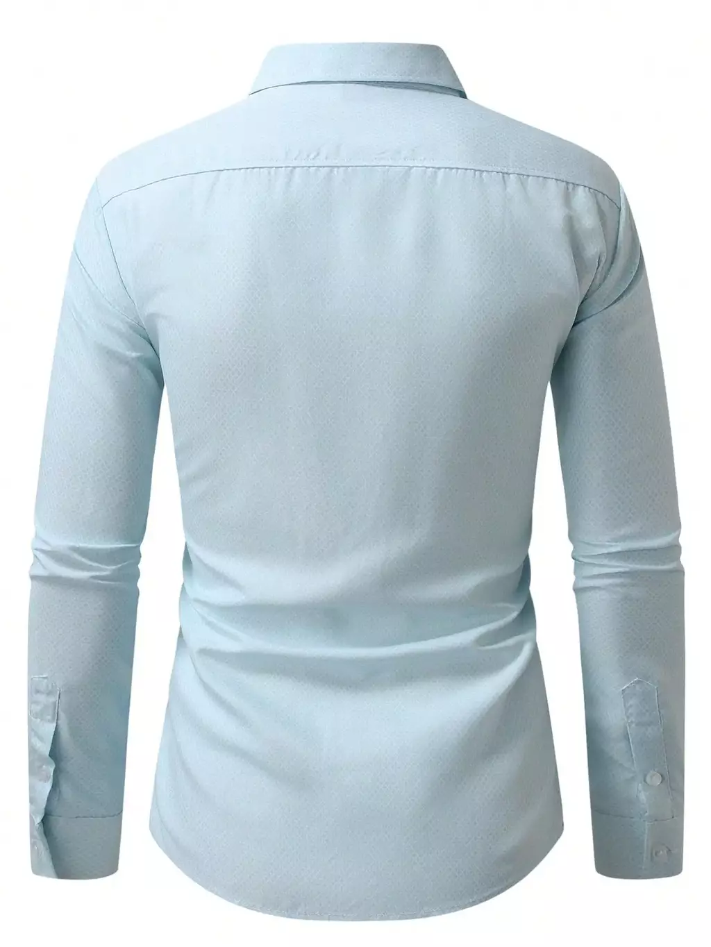 Confeccionada em tecido 100% poliéster de alta qualidade, oferece um caimento regular, confortável e bem estruturado. O modelo conta com manga longa regular, gola com variação de lapela e fechamento por botões frontais, garantindo um visual alinhado e moderno.