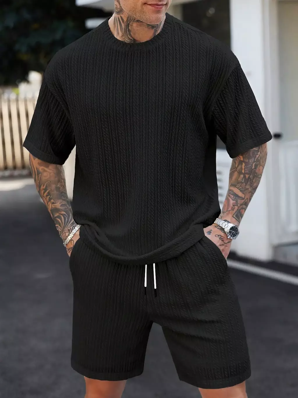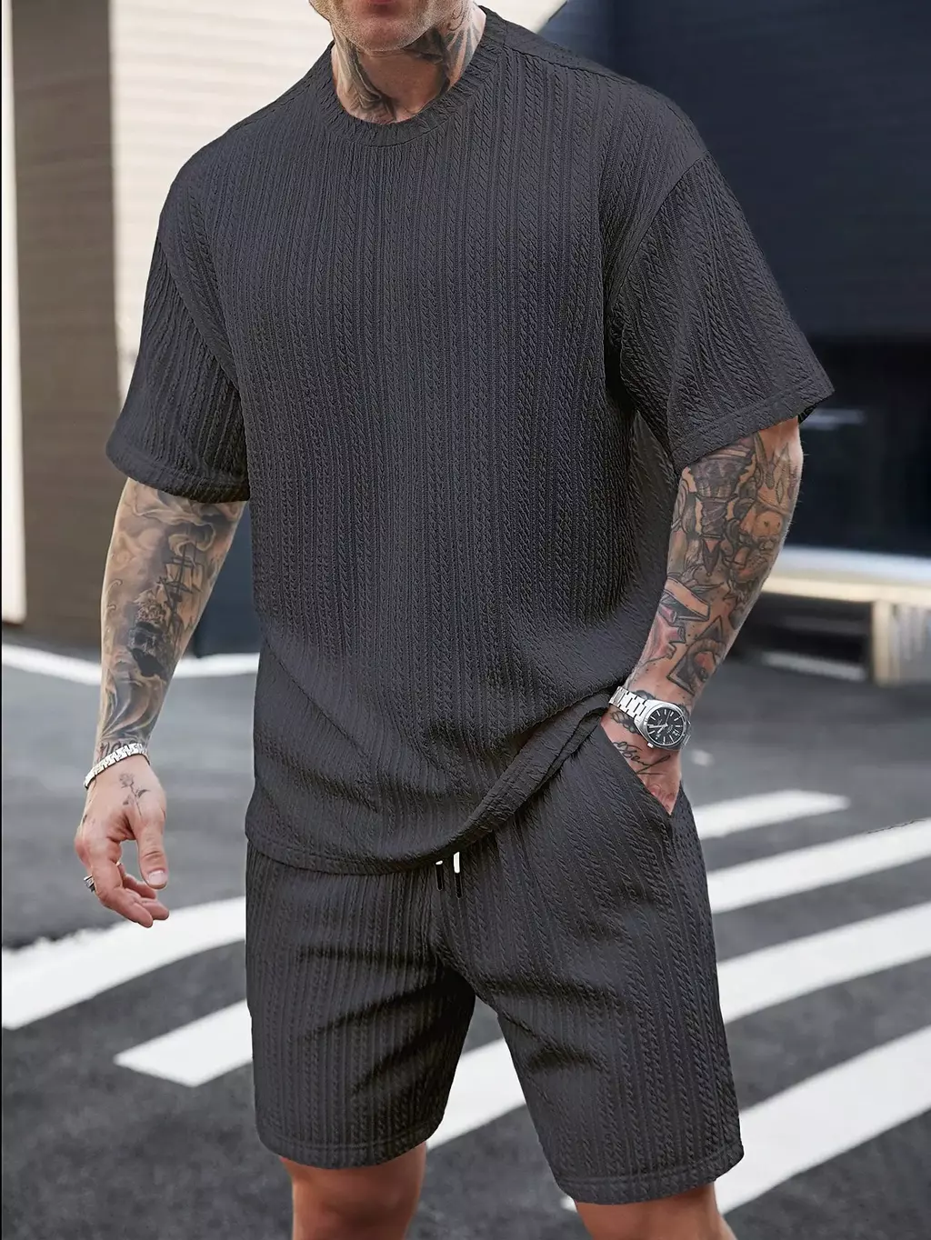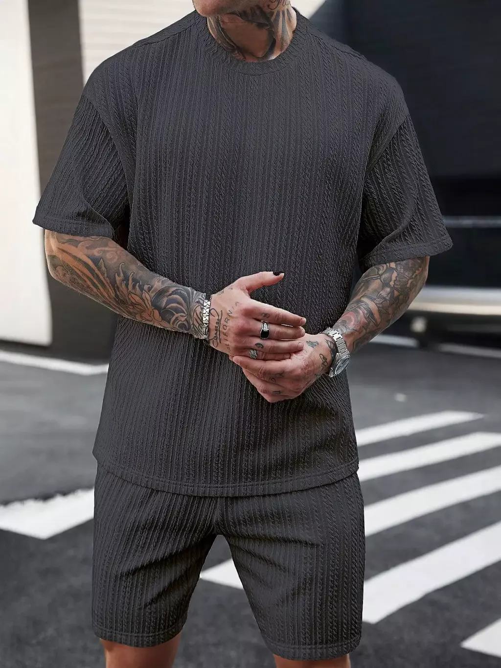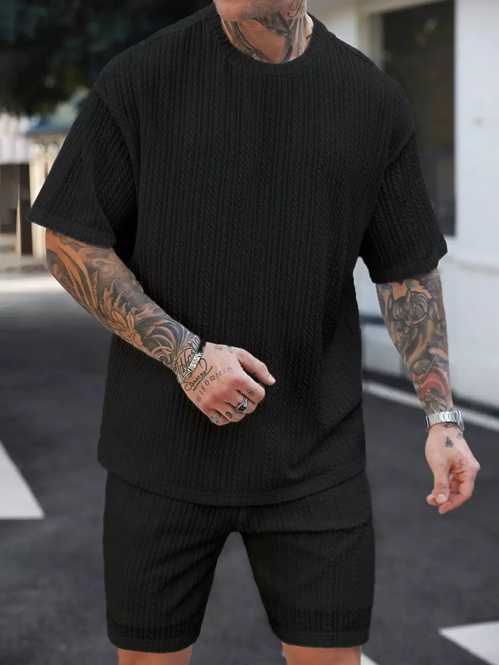 O Conjunto Soleil Tropic é a escolha perfeita para o uso diário, combinando conforto, estilo e praticidade. Desenvolvido para quem busca um visual casual com toque moderno, o conjunto é composto por uma camiseta de manga curta com gola redonda e ombro caído e um caleçon com comprimento curto, ideal para os dias mais quentes.