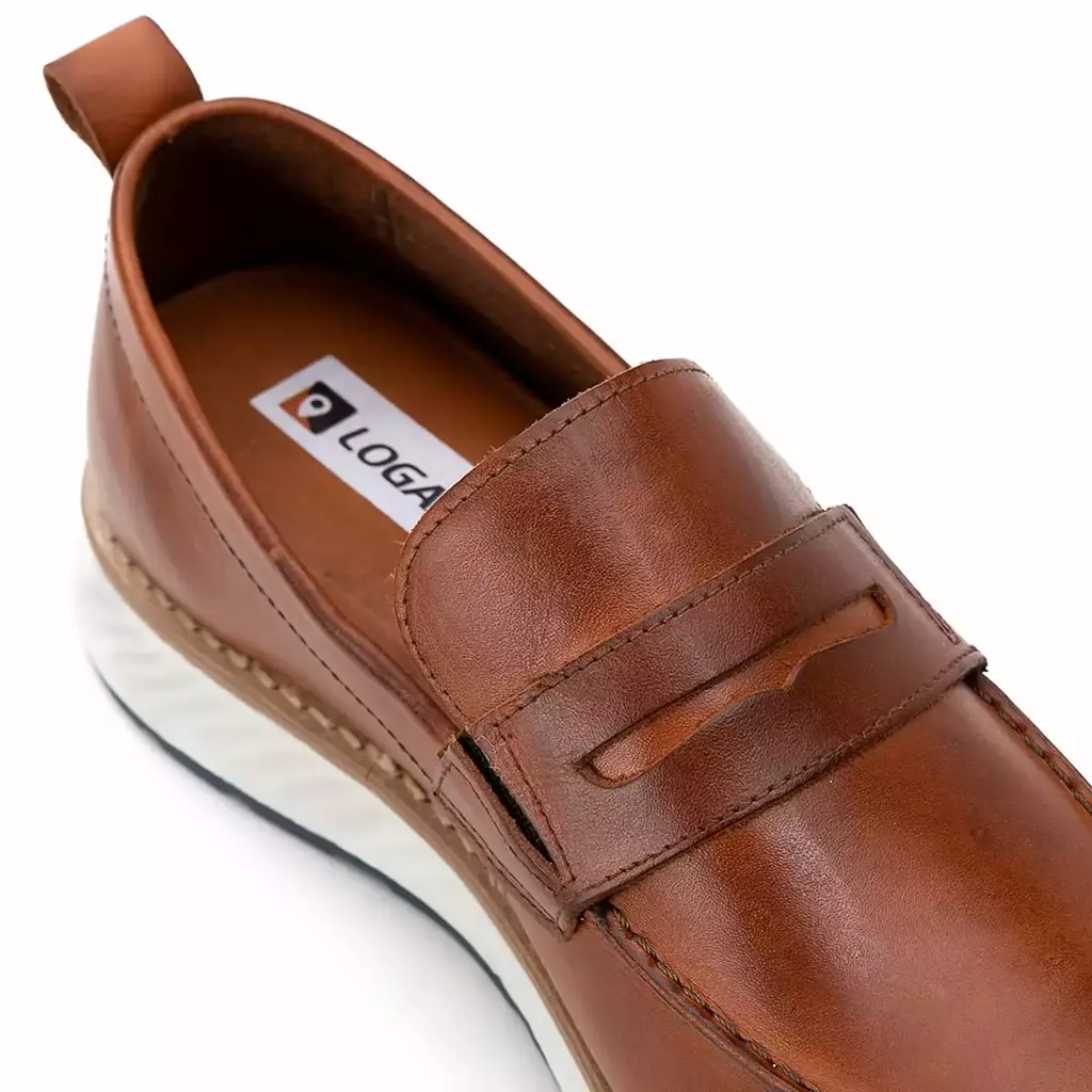 Com design clássico tipo Penny, o modelo apresenta bico arredondado e detalhe em amarrar no cabedal, conferindo um toque refinado ao visual. O salto plano proporciona conforto prolongado, enquanto o material superior em couro genuíno garante durabilidade e acabamento premium.