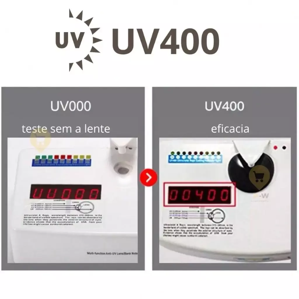 A lente escura oferece proteção UV400, bloqueando eficazmente os raios UVA e UVB, garantindo segurança e conforto visual sob o sol. O acabamento premium e os detalhes nas hastes realçam a qualidade artesanal do produto.