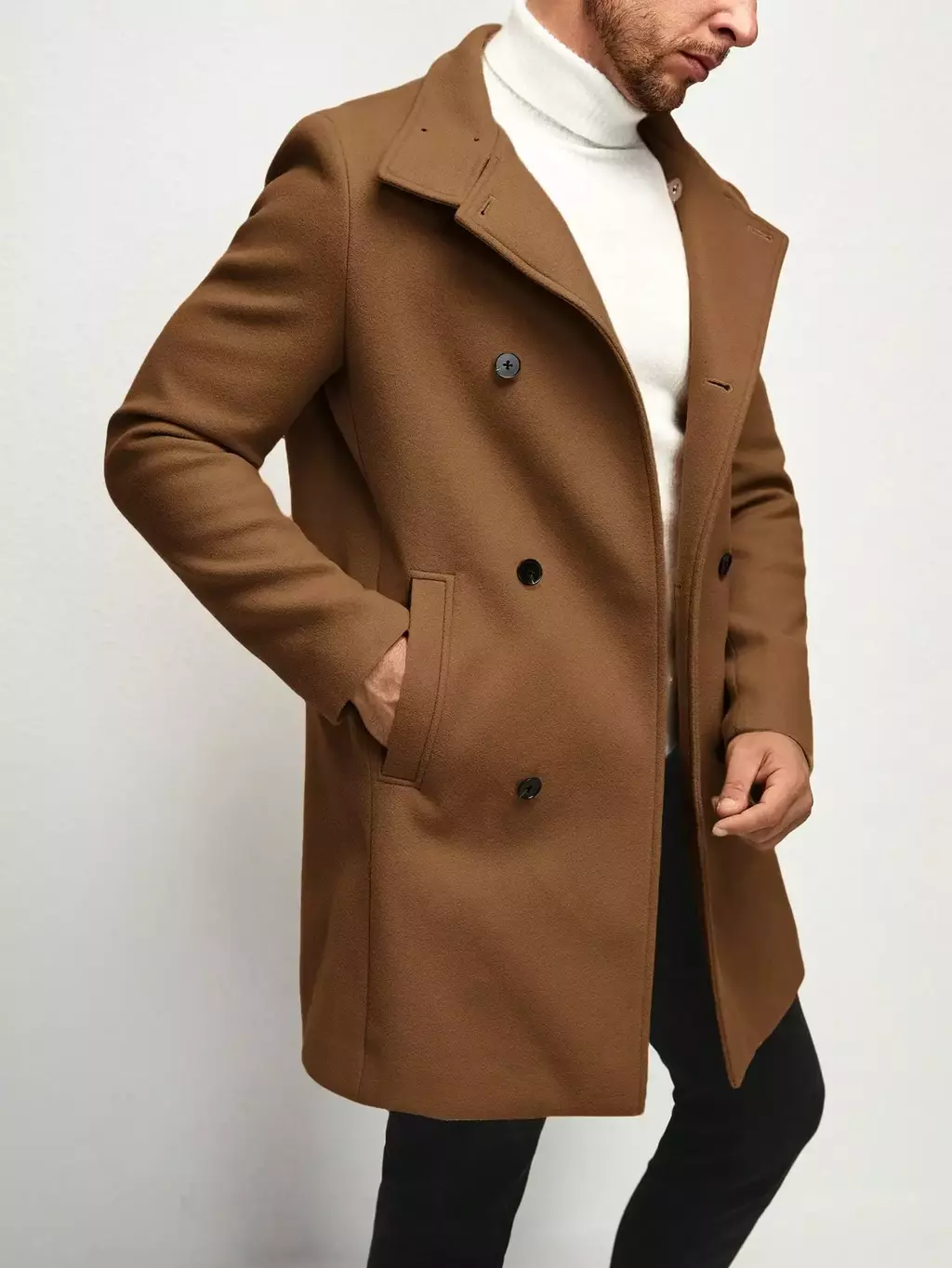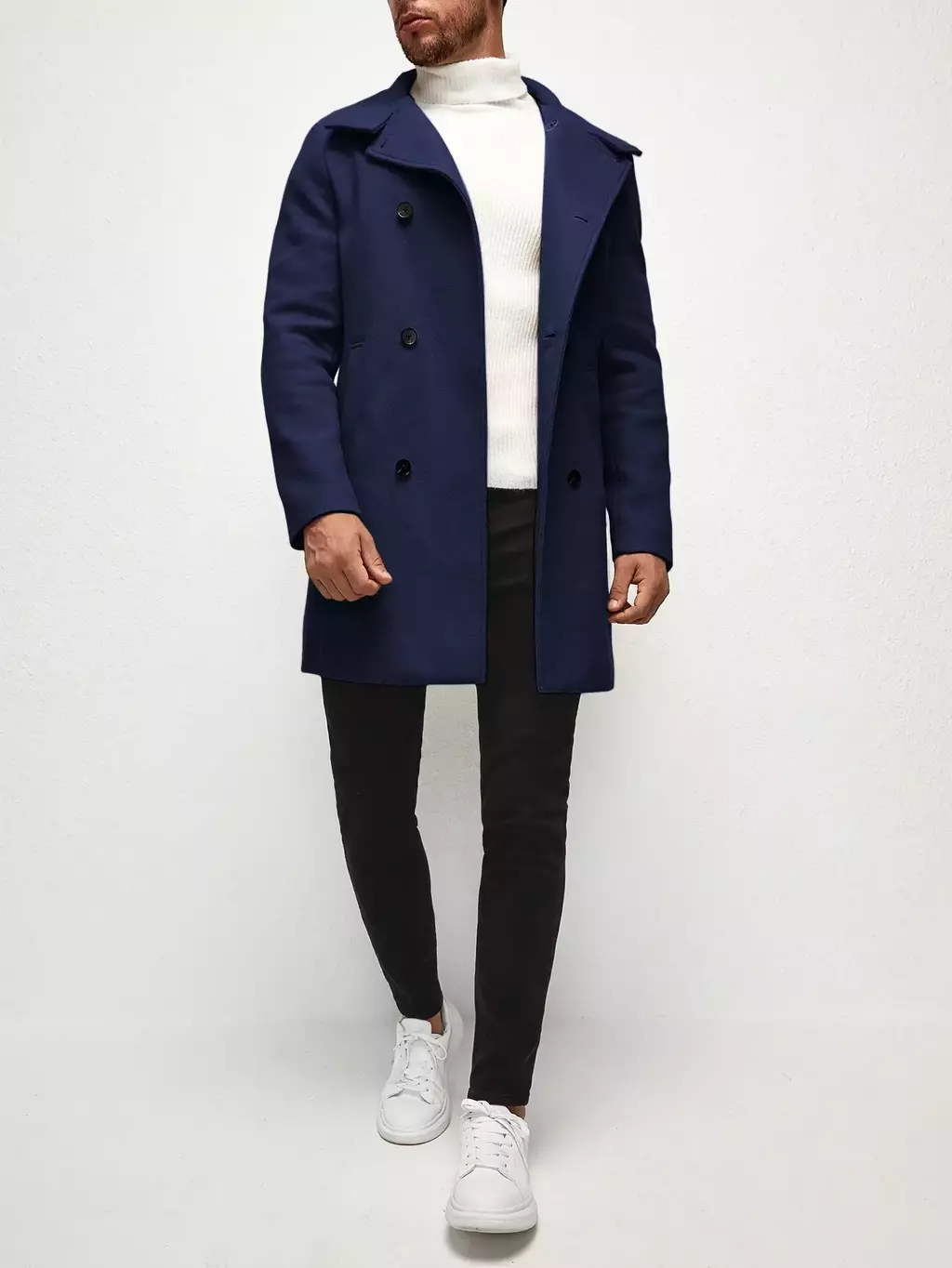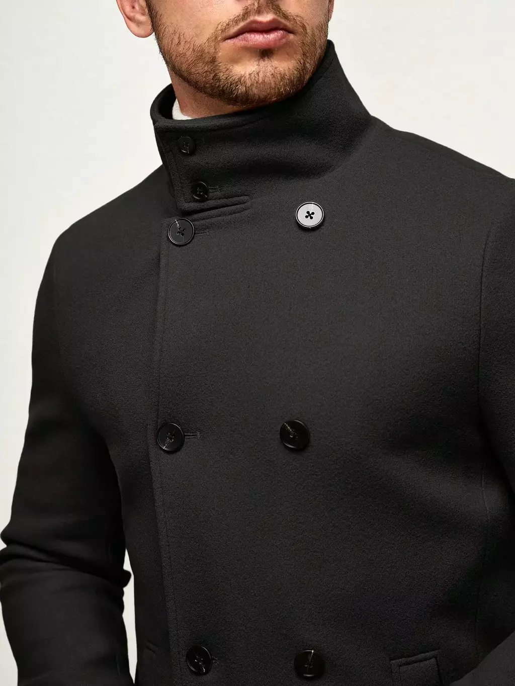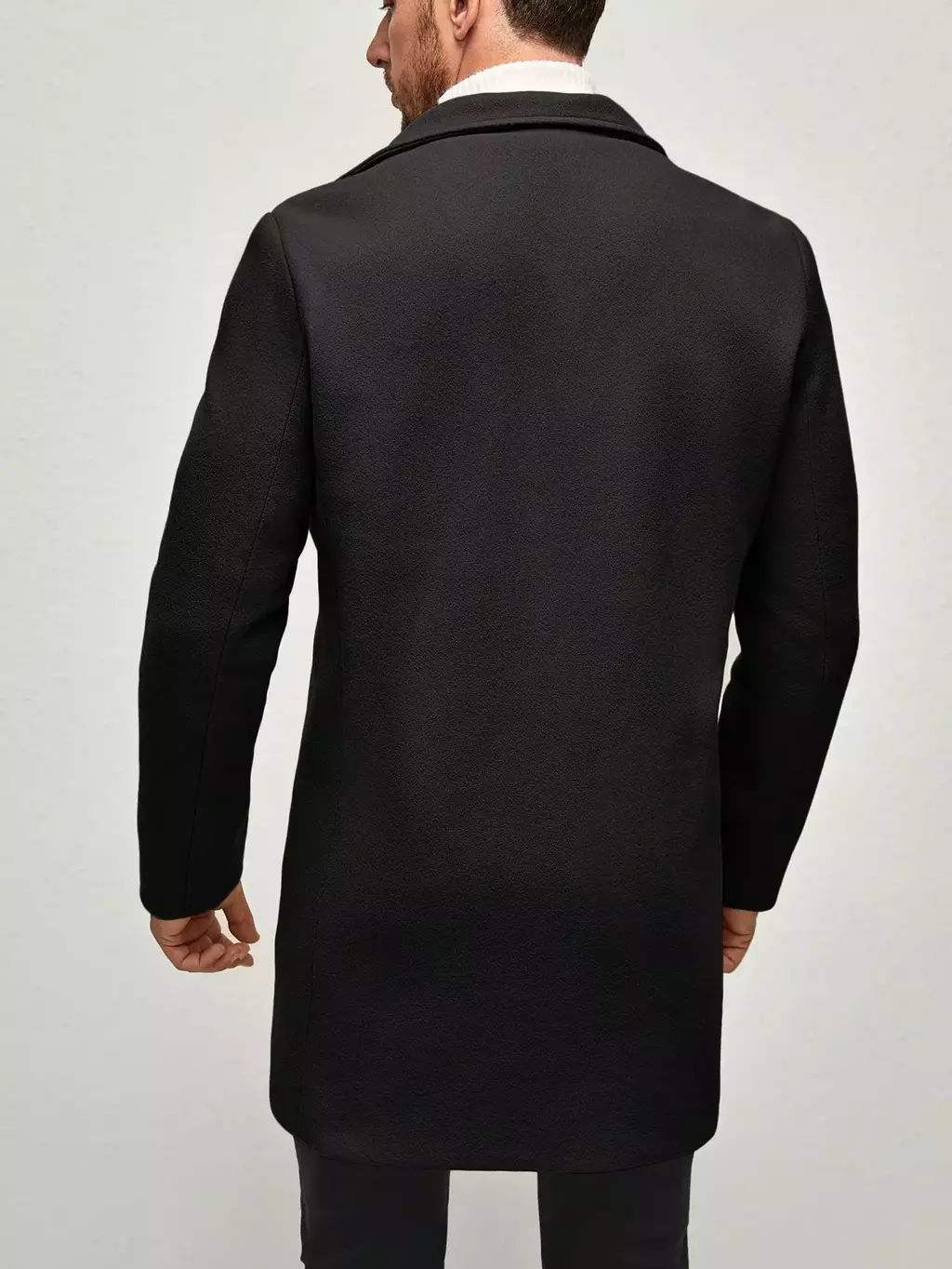 O design trespassado com botões duplos na parte frontal reforça o estilo clássico da peça, ao mesmo tempo em que adiciona um ar sofisticado ao visual. As lapelas estilo blazer elevam o look, tornando este sobretudo perfeito para composições com camisas sociais, malhas finas ou até mesmo suéteres mais robustos.