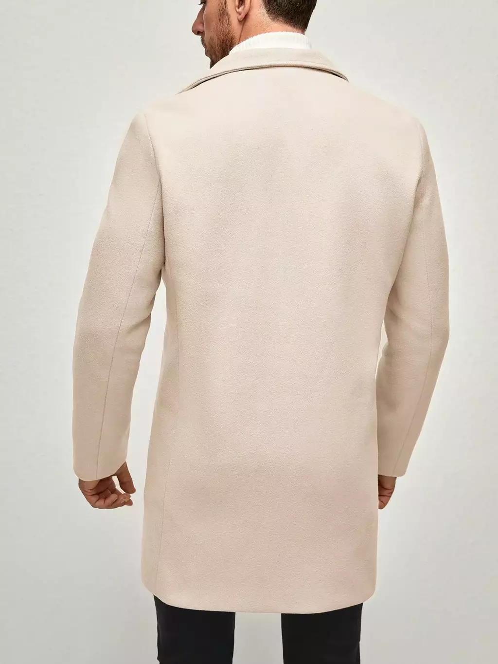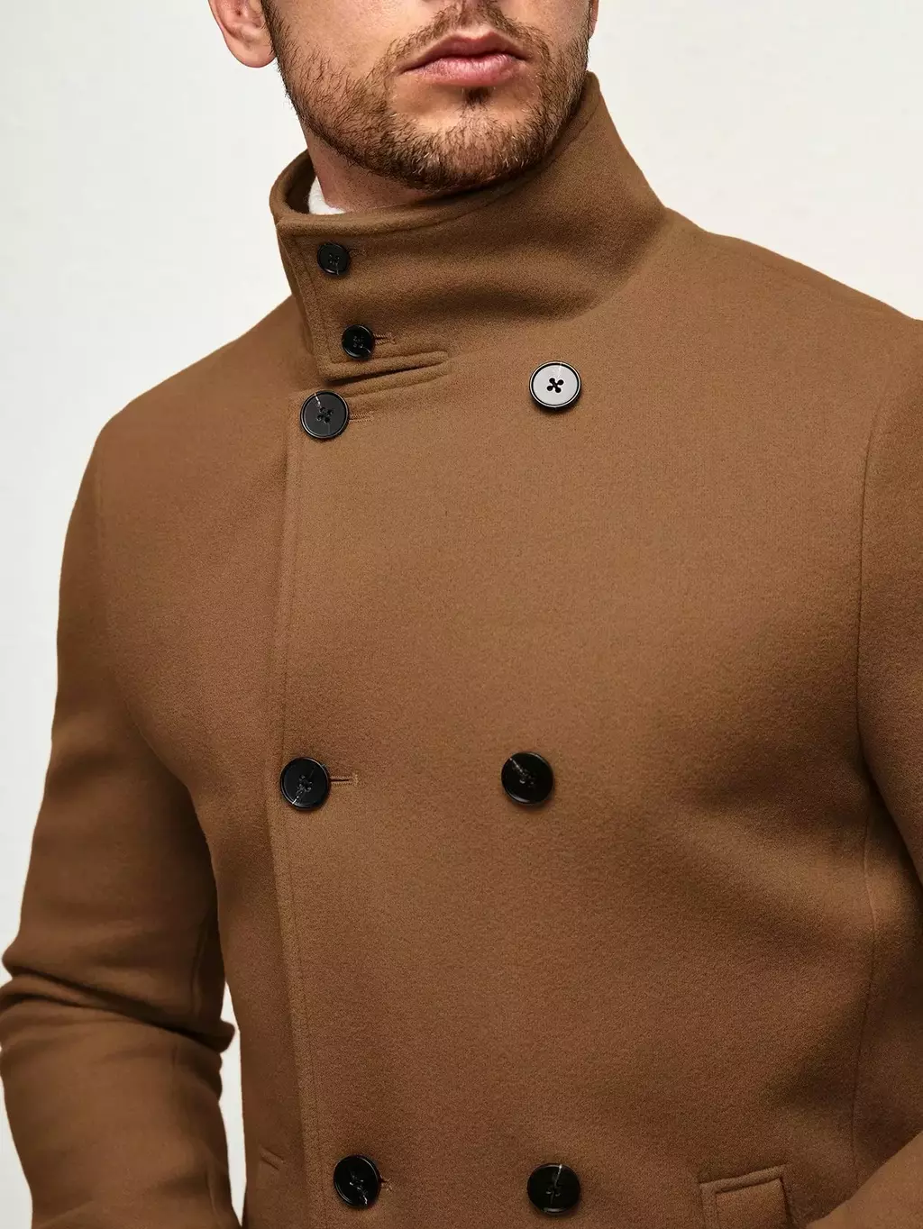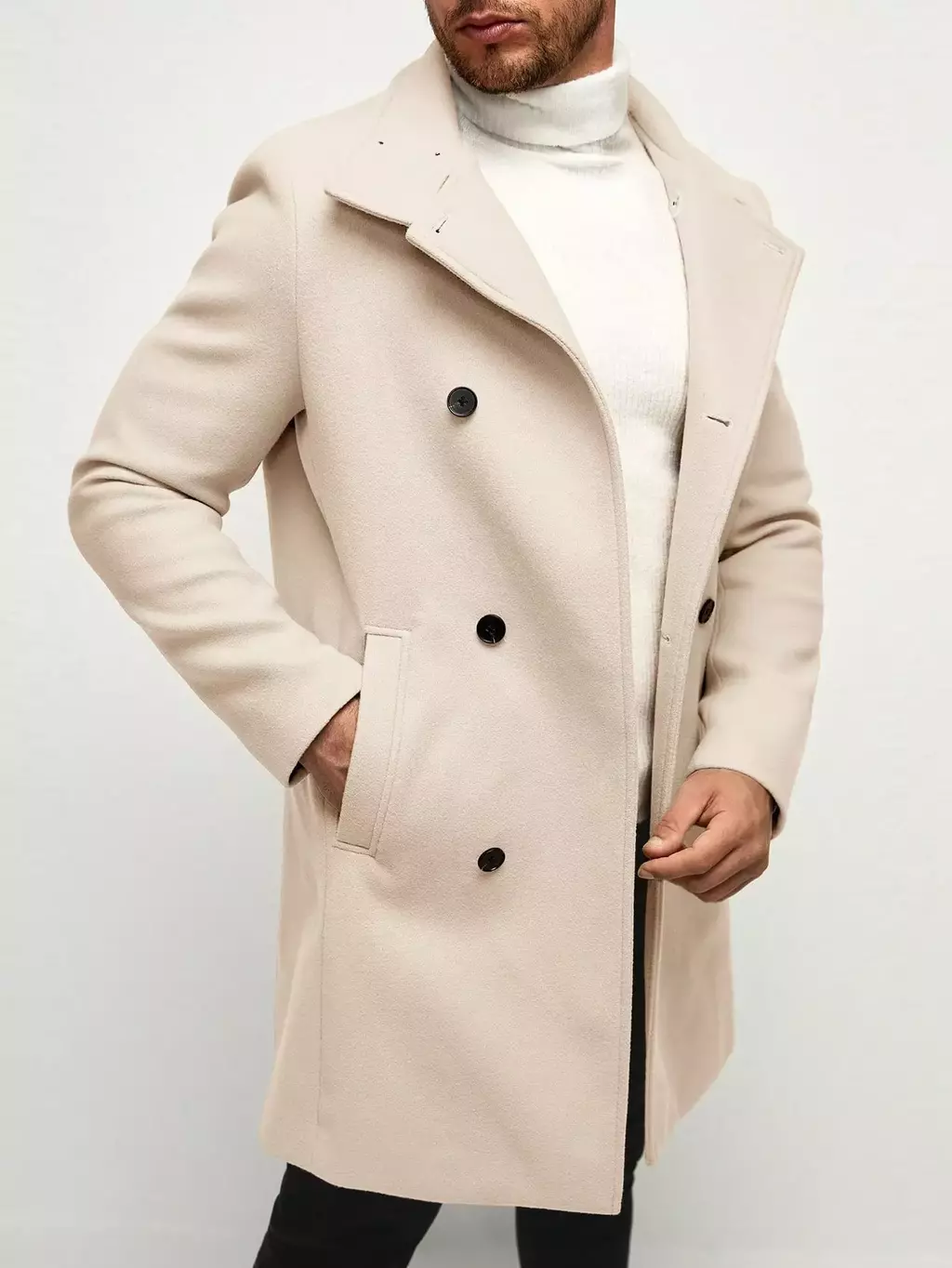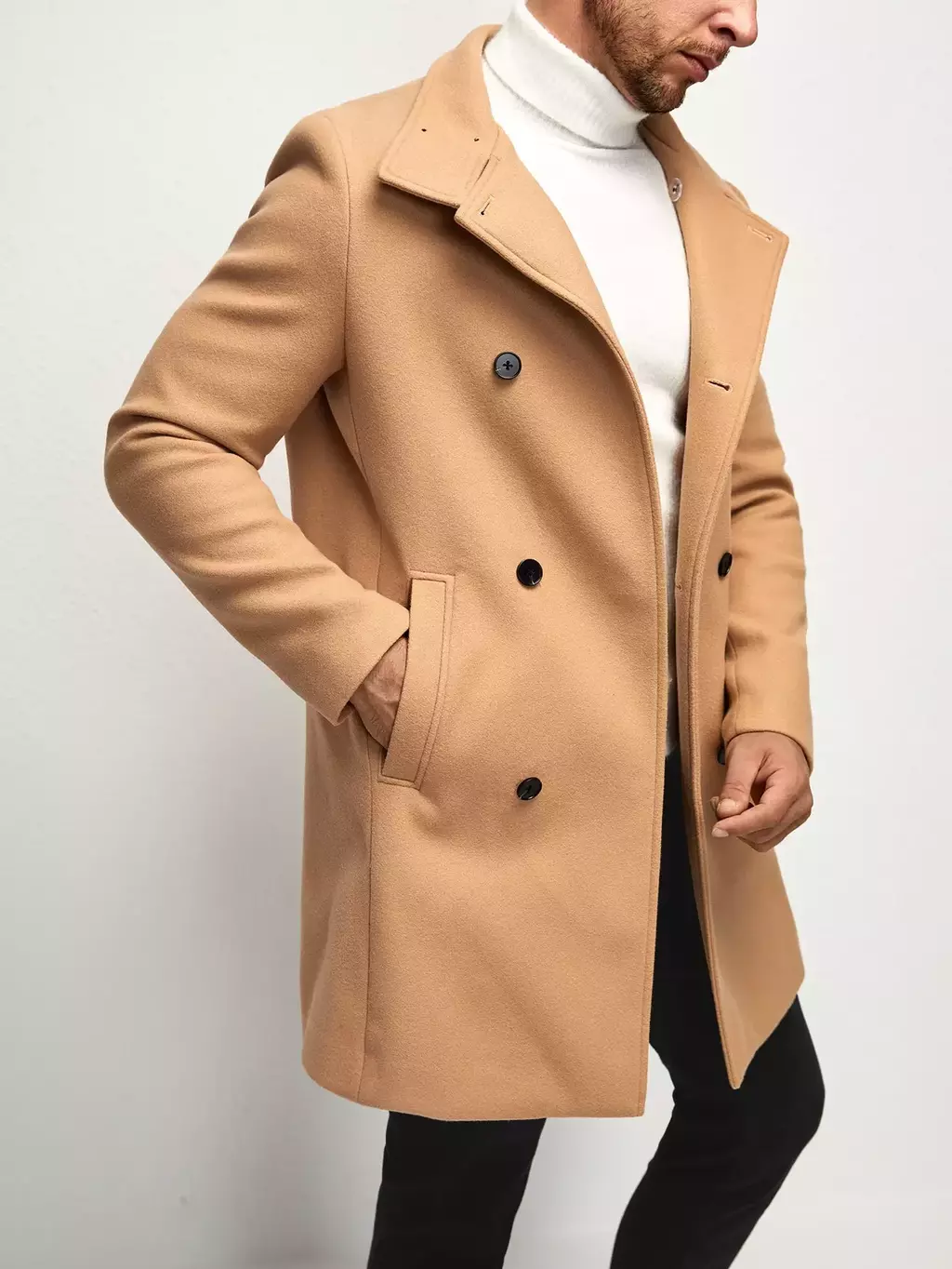 O design trespassado com botões duplos na parte frontal reforça o estilo clássico da peça, ao mesmo tempo em que adiciona um ar sofisticado ao visual. As lapelas estilo blazer elevam o look, tornando este sobretudo perfeito para composições com camisas sociais, malhas finas ou até mesmo suéteres mais robustos.