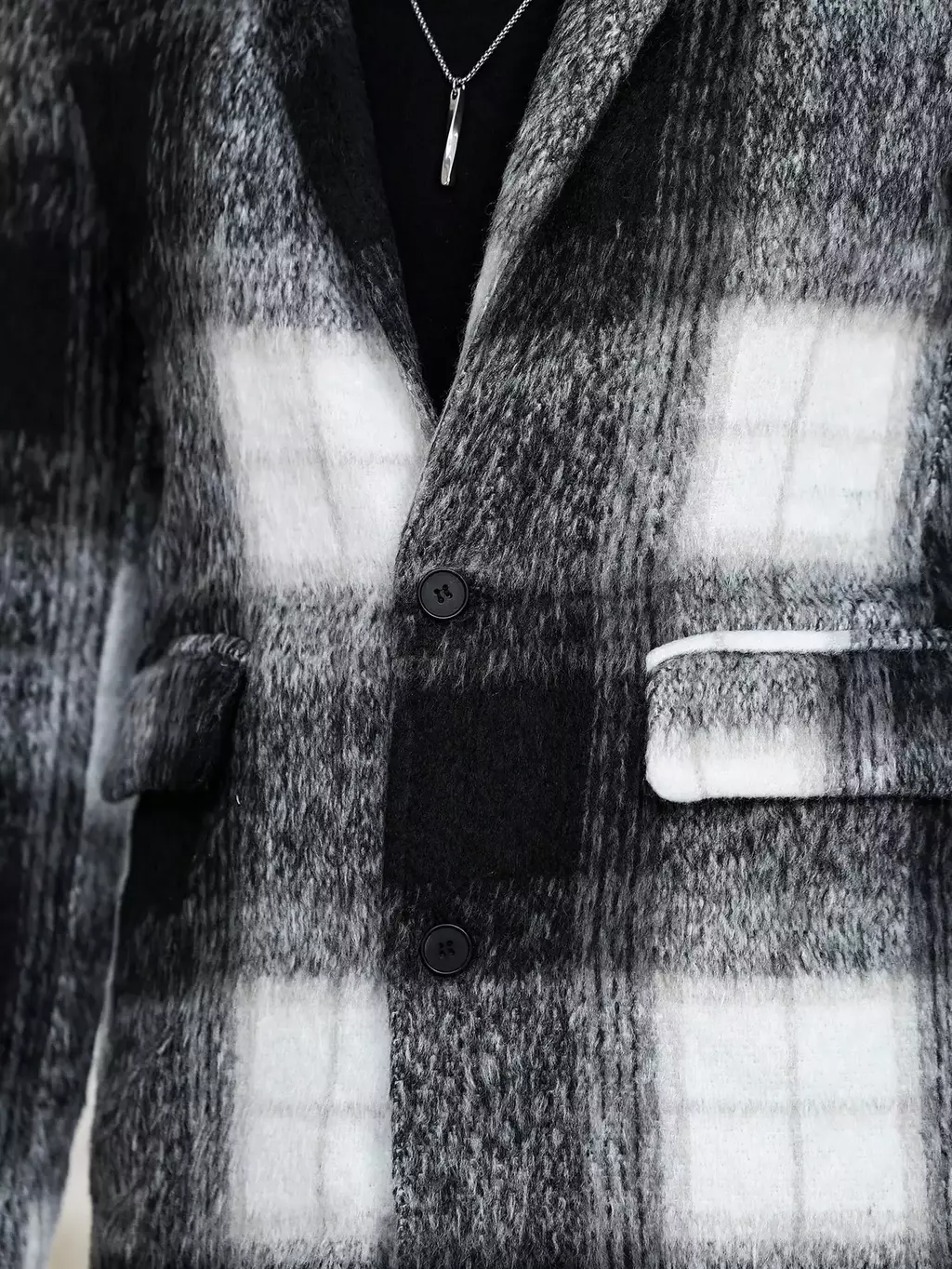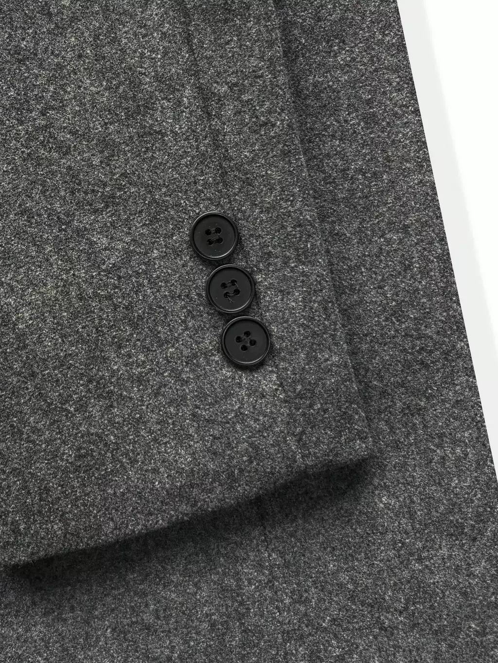 Confeccionado em tecido de malha 100% poliéster, o sobretudo possui caimento regular, com lapela de blazer, botões frontais, bolsos funcionais e acabamento alongado, oferecendo conforto térmico e sofisticação durante o outono e inverno, especialmente em temperaturas abaixo de 10 °C.
