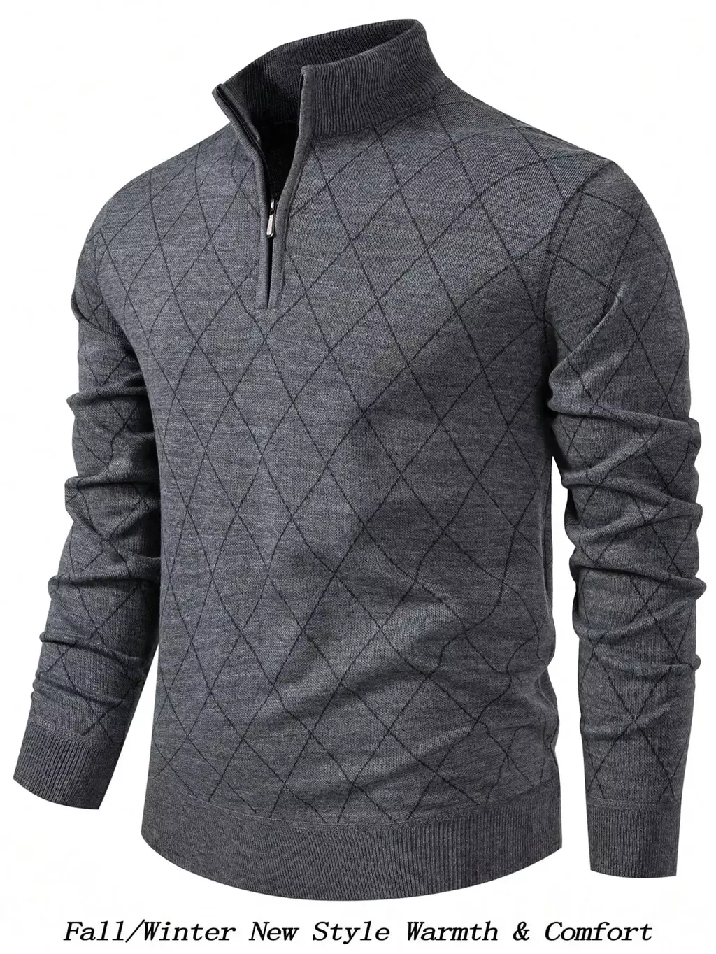Suéter de Malha Masculino de Manga Longa com Zíper